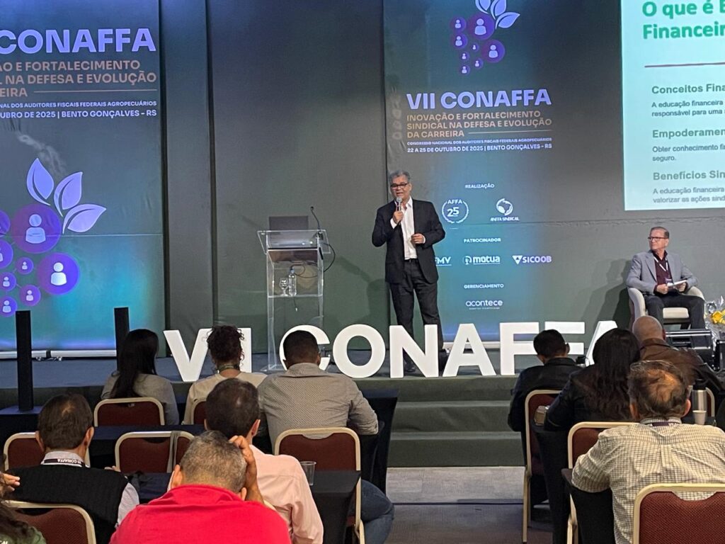 “Educar financeiramente é empoderar pessoas, gerar autonomia e fortalecer organizações”. Foi com esse argumento que o diretor-presidente do Sicoob Executivo e presidente da Confederação Brasileira das Cooperativas de Crédito, Luiz Lesse Moura Santos, abriu a palestra sobre “Educação financeira como ferramenta de fortalecimento sindical e pessoal”, durante a programação do VII Congresso Nacional dos Auditores-Fiscais Federais Agropecuários (Conaffa), na quinta-feira (23). O evento está sendo realizado em Bento Gonçalves (RS) e segue até sábado (25).