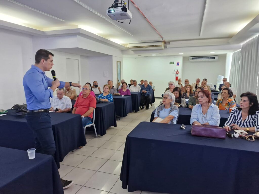 Já Mauricio Porto trouxe dados sobre o quadro de aposentados e pensionistas, explicou o cálculo das pensões e contribuições previdenciárias, e atualizou os filiados sobre o andamento de ações antigas, como as da GDAFFA (Processão) e do 3,17%. Também tratou das PECs 555/2006 e 06/2024, que tratam da isenção gradativa da contribuição previdenciária para aposentados, e reforçou orientações sobre cuidados com golpes direcionados a servidores e a importância da baixa nos registros profissionais após a aposentadoria.