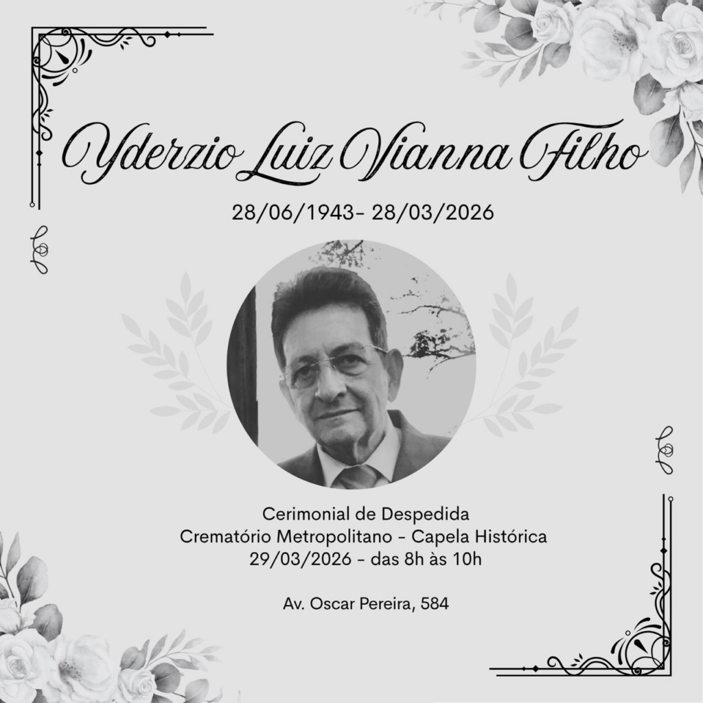 O Sindicato Nacional dos Auditores Fiscais Federais Agropecuários, lamenta, com imenso pesar, o falecimento do Auditor Fiscal Federal Agropecuário aposentado, Ydérzio Luiz Vianna Filho, ocorrido em 28 de março de 2026.